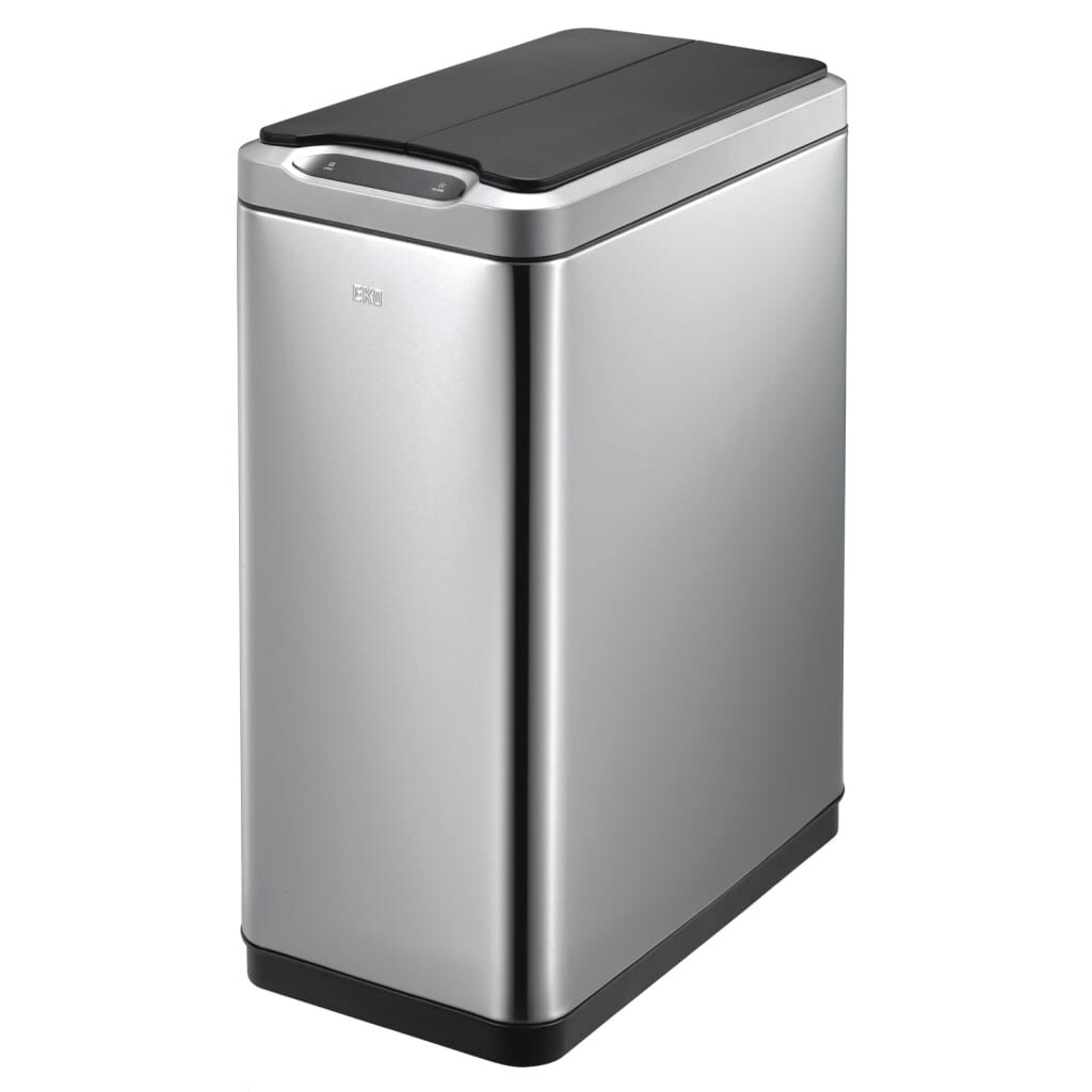 Mechanizm czujnika zawierający przełącznik dotykowy umożliwia otwieranie i zamykanie pojemnika za pomocą czujnika lub przycisku. Smukła konstrukcja sprawia, że produkt ten idealnie nadaje się do małych przestrzeni. Cicho zamykająca się pokrywa otwiera się na dwie części, dzięki czemu łatwo zmieści się pod blatem.