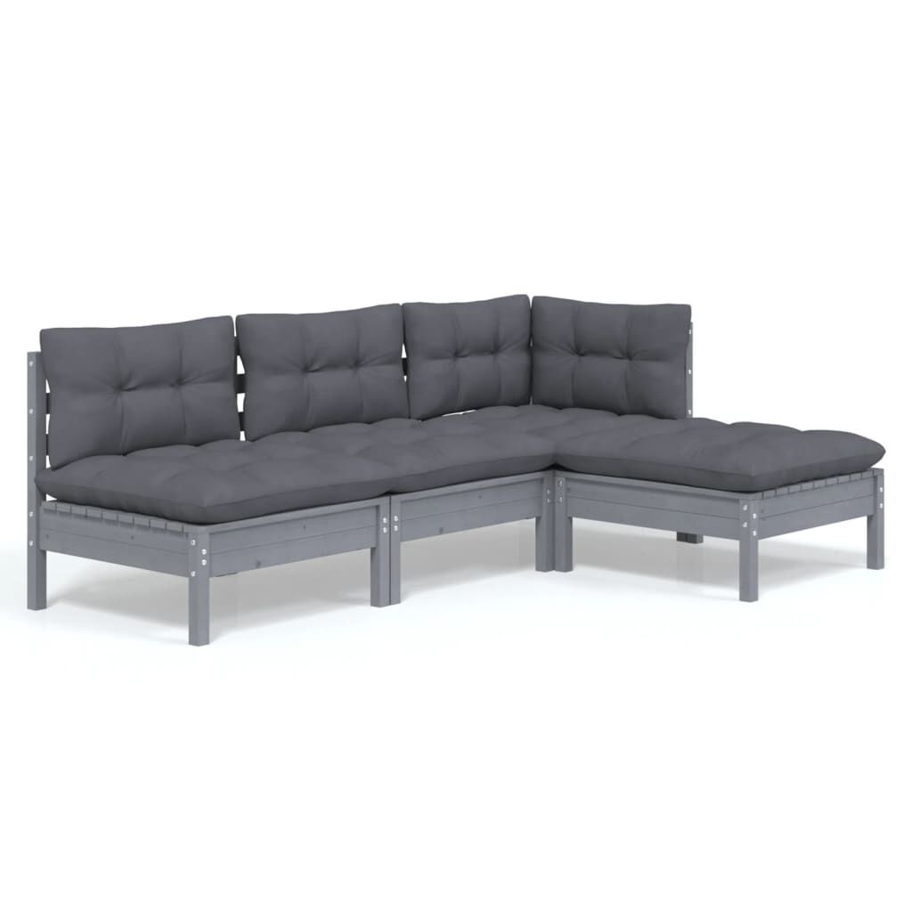 vidaXL 4-cz. zestaw wypoczynkowy do ogrodu, z poduszkami, szara sosna