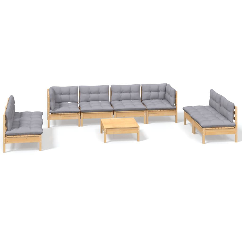 vidaXL 9-cz. zestaw wypoczynkowy do ogrodu, szare poduszki, sosna