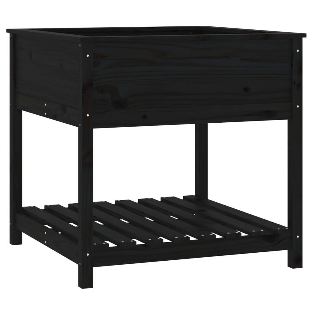 vidaXL Donica z półką, czarna, 82,5x82,5x81 cm, lite drewno sosnowe