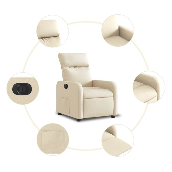 vidaXL Elektryczny fotel rozkładany, kremowy, obity tkaniną