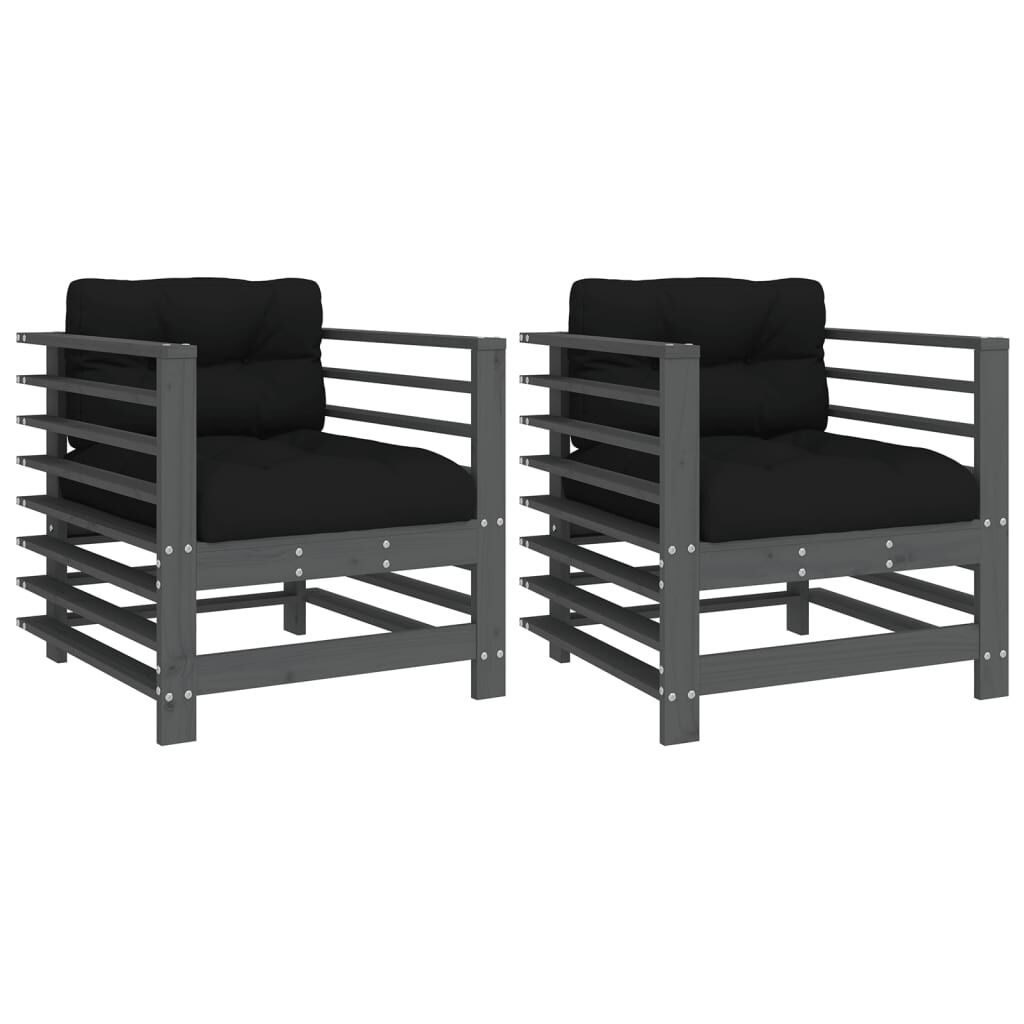 vidaXL Fotele ogrodowe z poduszkami, 2 szt, szare, lite drewno sosnowe