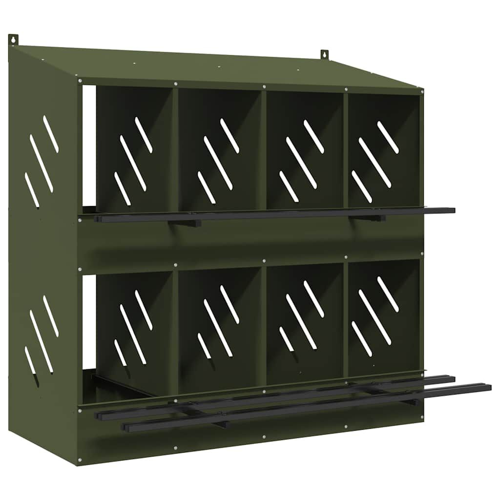 Ta klatka lęgowa dla kur zapewnia dużą i zorganizowaną przestrzeń, w której kury mogą wygodnie znosić jaja.
