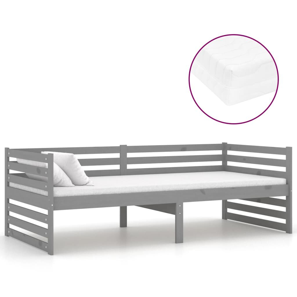 vidaXL Łóżko dzienne z materacem, 90x200 cm, szare, drewno sosnowe