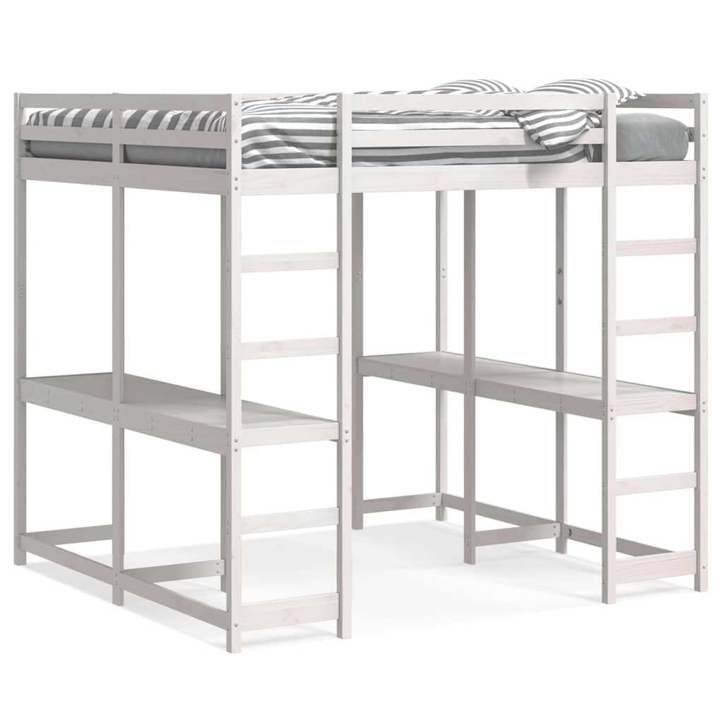 vidaXL Łóżko na antresoli, z biurkiem i drabinką, białe, 180x200 cm