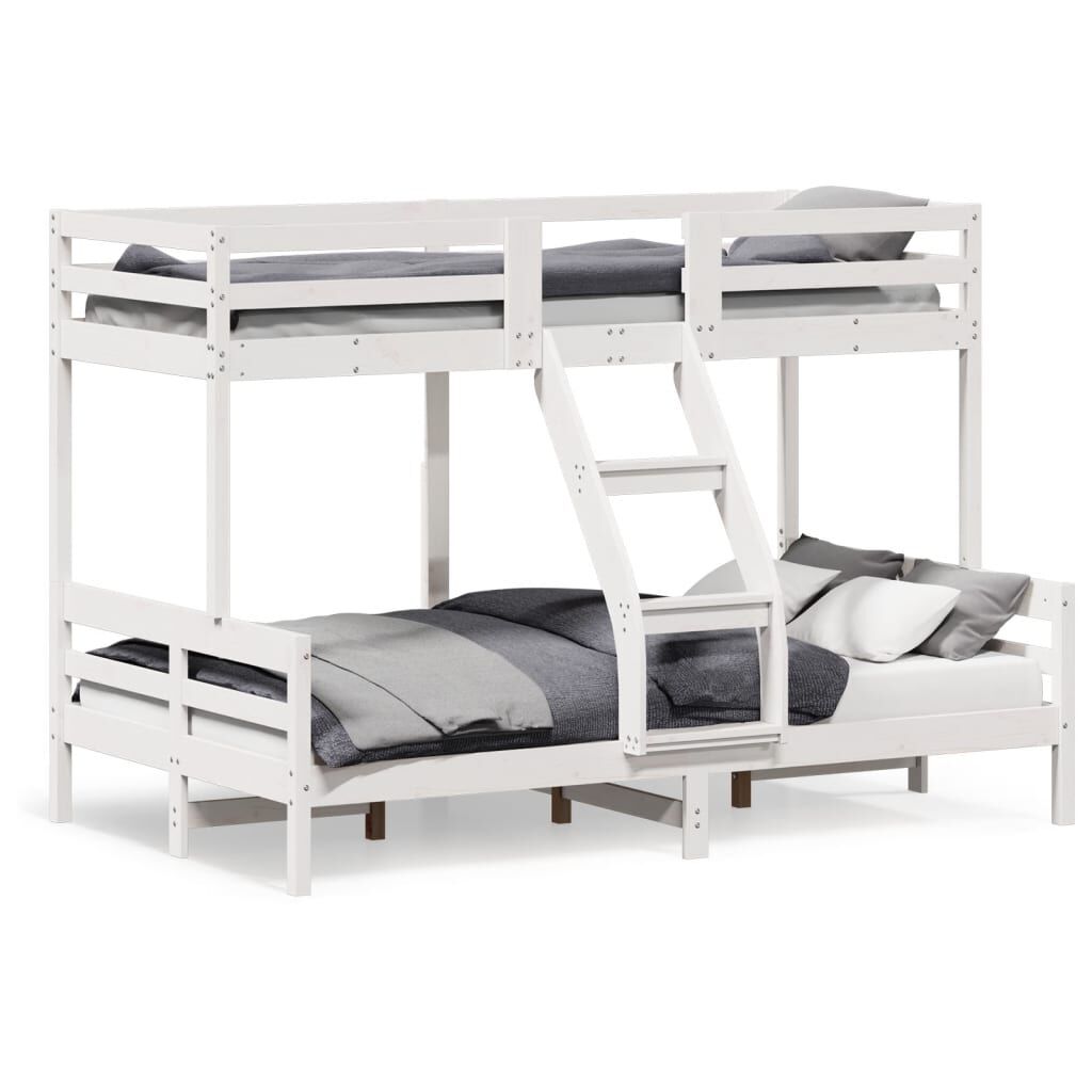 vidaXL Łóżko piętrowe, 90x200/120x200 cm, białe, lite drewno sosnowe