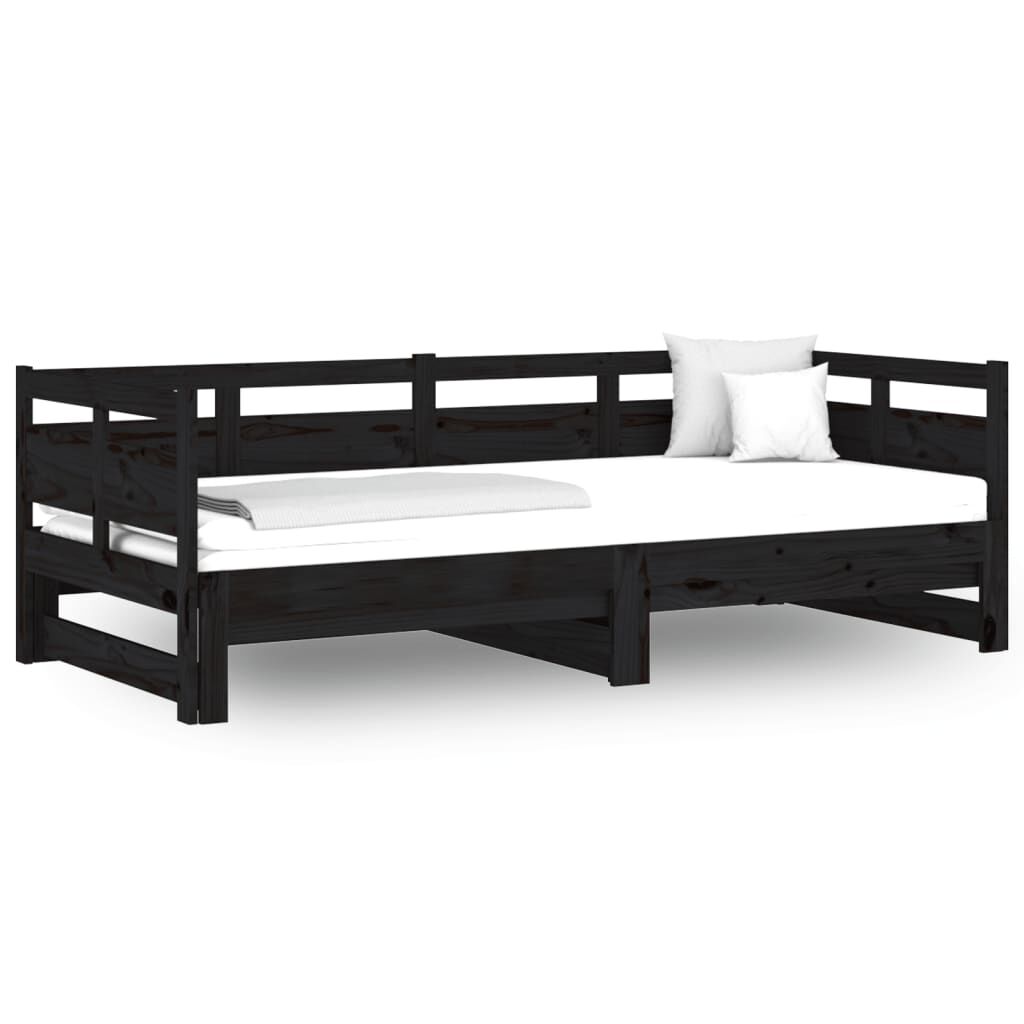 vidaXL Łóżko rozsuwane, czarne, lite drewno sosnowe, 2x(80x200) cm