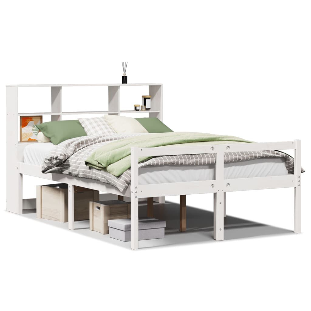 vidaXL Łóżko z regałem, bez materaca, białe, 120x200 cm, sosnowe