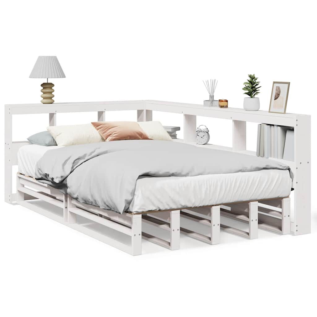 vidaXL Łóżko z regałem, bez materaca, białe, 120x200 cm, sosnowe