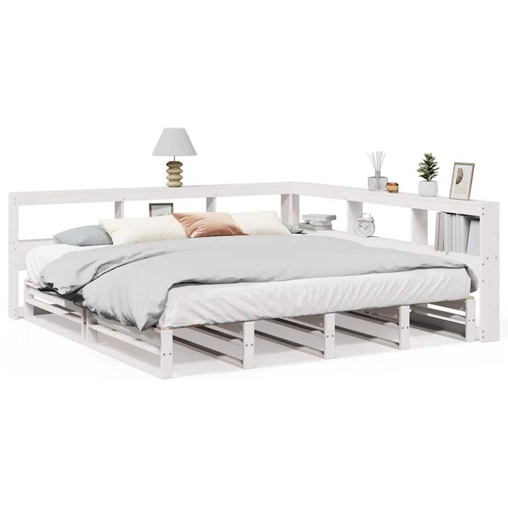 vidaXL Łóżko z regałem, bez materaca, białe, 180x200 cm, sosnowe