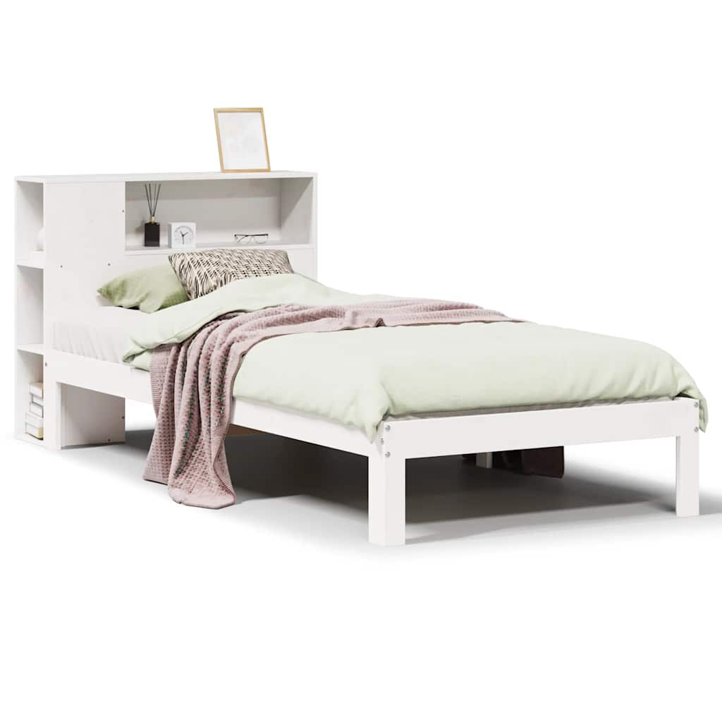 vidaXL Łóżko z regałem, bez materaca, białe, 75x190 cm, sosnowe