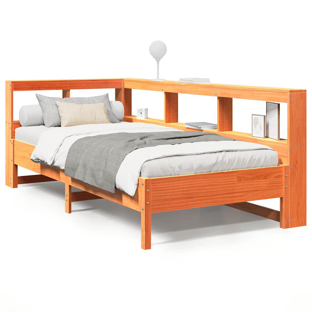 vidaXL Łóżko z regałem, bez materaca, woskowy brąz, 90x200 cm, sosnowe