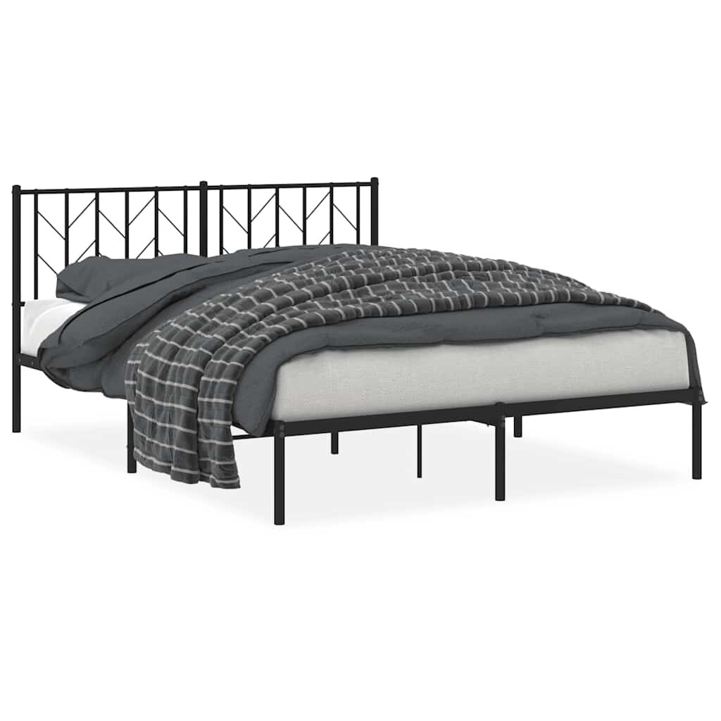 vidaXL Metalowa rama łóżka z wezgłowiem, czarna, 150x200 cm