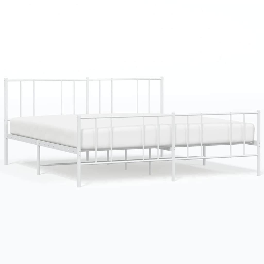 vidaXL Metalowa rama łóżka z wezgłowiem i zanóżkiem, biała, 193x203 cm