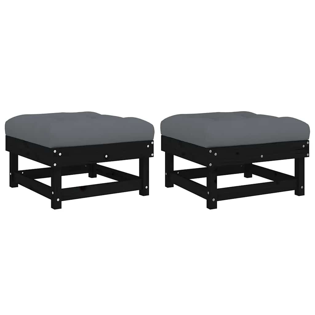 vidaXL Podnóżki ogrodowe z poduszkami, 2 szt., czarne, drewno sosnowe