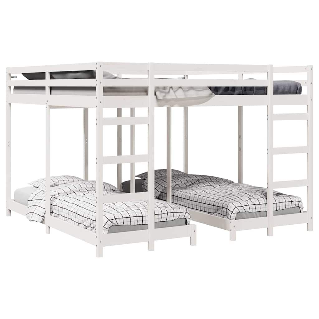 vidaXL Rama łóżka piętrowego z trzema poziomami Biały 200 x 200 cm