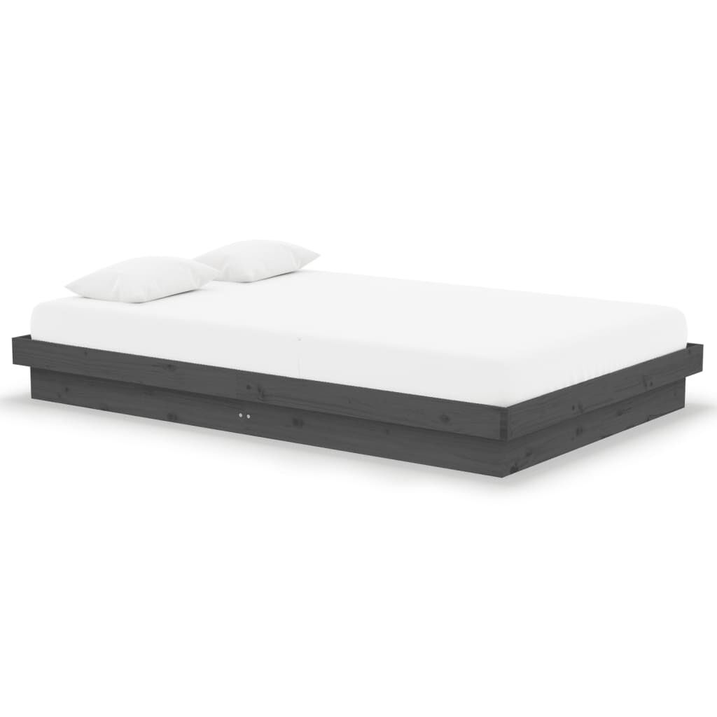 vidaXL Rama łóżka, szara, lite drewno, 120x190 cm, podwójna