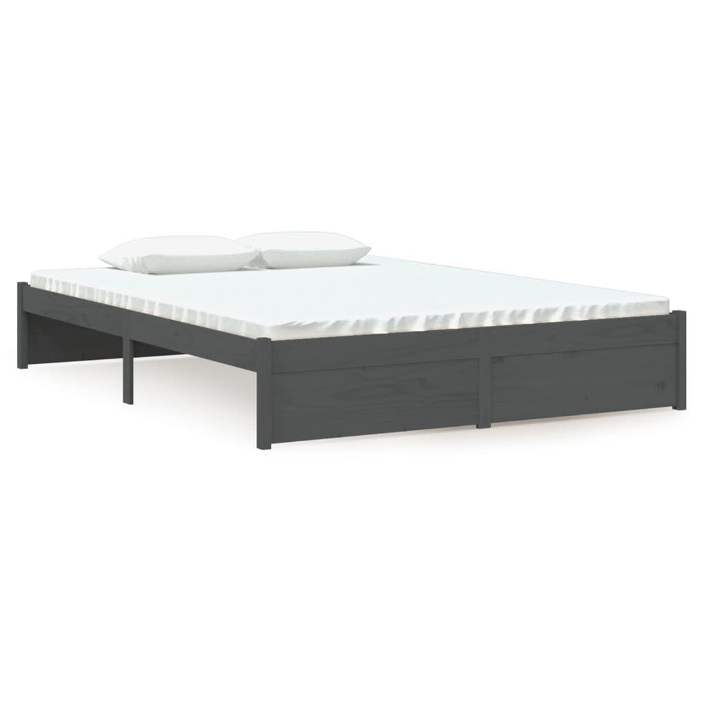 vidaXL Rama łóżka, szara, lite drewno, 135x190 cm, podwójna