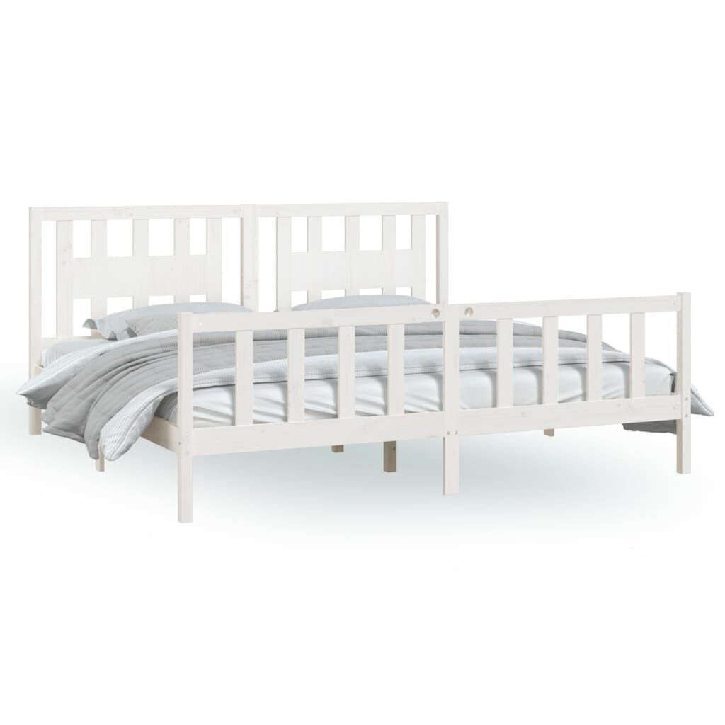 vidaXL Rama łóżka z wezgłowiem, biała, lite drewno sosnowe, 200x200 cm