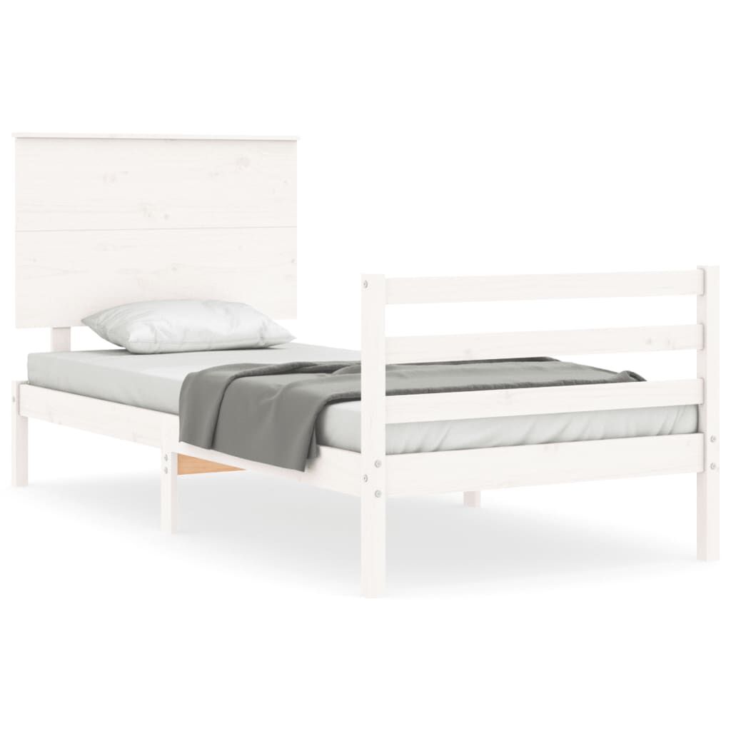 vidaXL Rama łóżka z wezgłowiem, biała, lite drewno