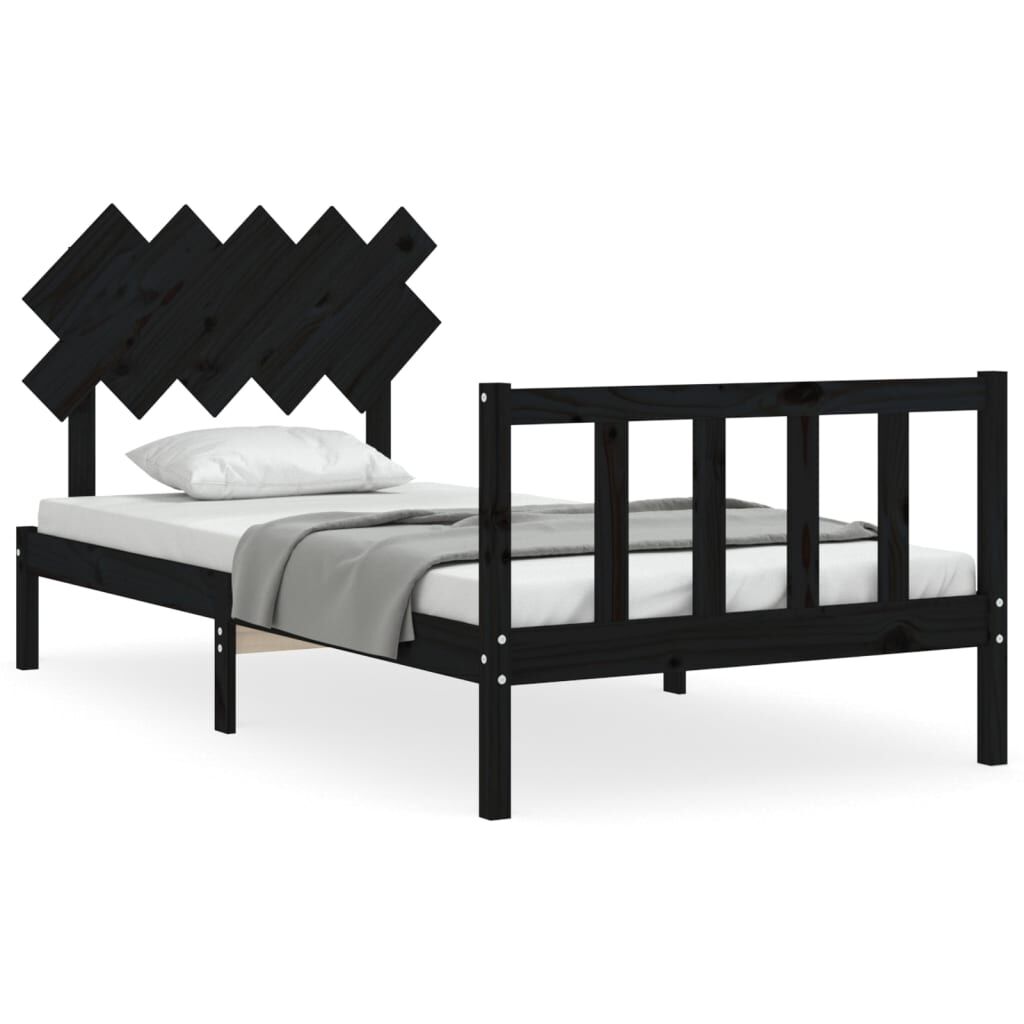vidaXL Rama łóżka z wezgłowiem, czarna, 100x200 cm, lite drewno