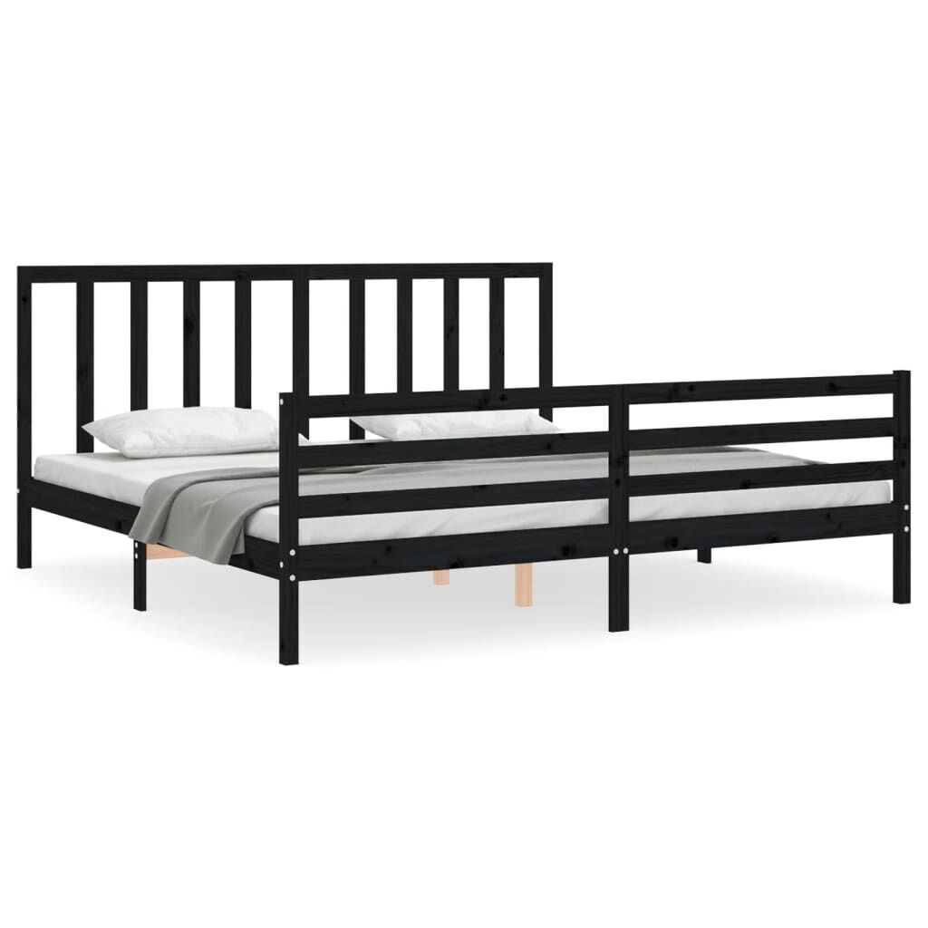 vidaXL Rama łóżka z wezgłowiem, czarna, 200x200 cm, lite drewno