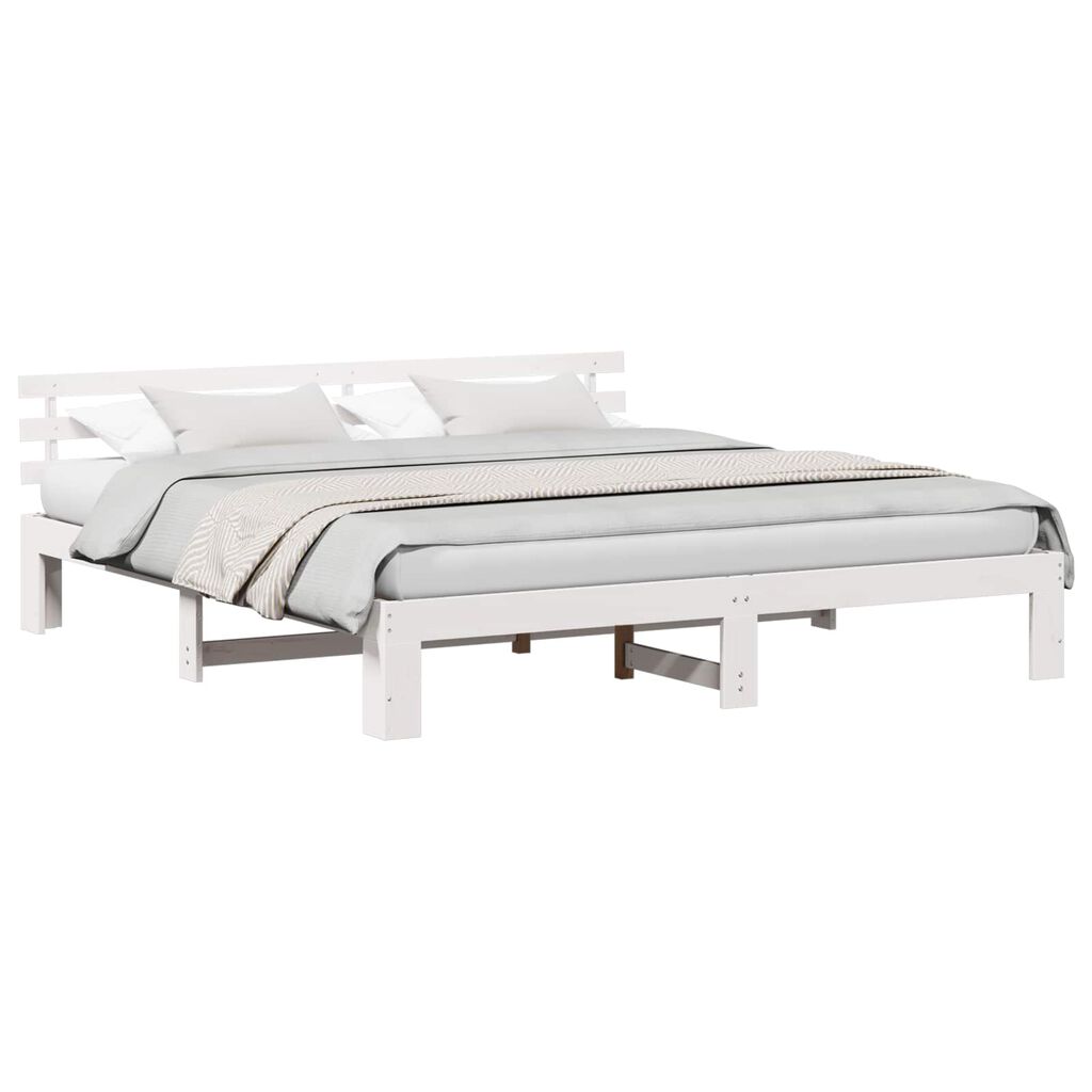 vidaXL Ramka łóżka Z zagłówkiem Biały 200 x 200 cm Lite drewno sosnowe