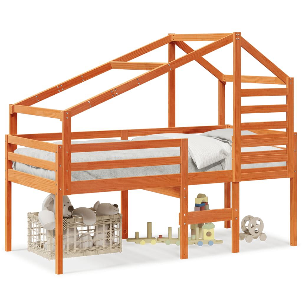 vidaXL Wysokie łóżko z dachem, woskowy brąz, 90x190 cm, drewno sosnowe