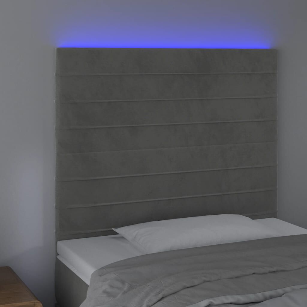 vidaXL Zagłówek do łóżka z LED, jasnoszary, 90x5x118/128 cm, aksamit