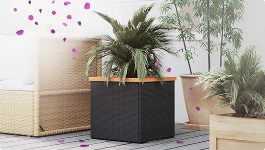 Potrzebujesz miejsca na sprzęt ogrodniczy, poduszki tarasowe lub zabawki dla dzieci? Rattanowe skrzynie do przechowywania zapewniają wystarczająco dużo miejsca, aby ukryć wszystkie skarby. Możesz być pewien, że wytrzymają próbę czasu, dzięki czemu będziesz mógł cieszyć się ich trawałością przez wiele lat.