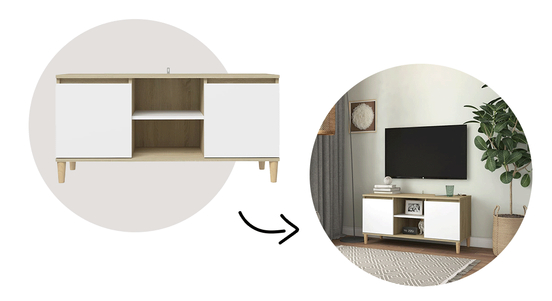 Zdecyduj się na proste linie, uporządkowaną przestrzeń i neutralną paletę kolorów, aby stworzyć spokojne wnętrze. Na przykład szafka pod telewizor może łączyć strukturę naturalnego drewna z bielą drzwiczek. Przechowuj swoje rzeczy poza zasięgiem wzroku, aby zachować porządek, ale ustaw kilka przedmiotów na otwartych półkach, aby dodać odrobinę koloru.