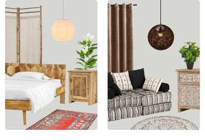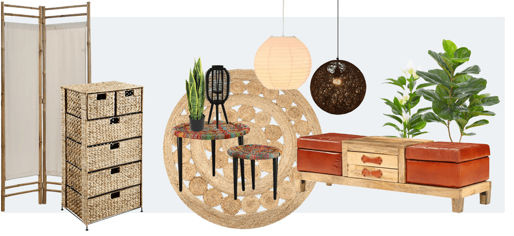Nie ma dwóch artystycznych wnętrz, które wyglądałyby dokładnie tak samo. To idealny styl, jeśli chcesz stworzyć coś wyjątkowego. Meble boho wykonane są z naturalnych materiałów, takich jak rattan, bambus, wiklina, juta, sizal i drewno z recyklingu. Ten styl pozwala rozpoznać miejsca do których ostatnio podróżowałeś, eksponując pamiątki w na ładnej półce lub na stoliku bocznym.
