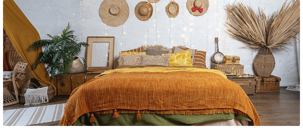 Wnętrze w stylu boho sprawia wrażenie, jakbyś spędzał wakacje we własnym domu. Ten styl projektowania wnętrz jest pełen żywych kolorów, naturalnych materiałów, faktur i odważnych wzorów. Jest to również idealny styl, aby wyeksponować wszystkie pamiątki zebrane podczas podróży. Jeśli chcesz dać upust swojej kreatywności: styl boho jest właśnie dla Ciebie!